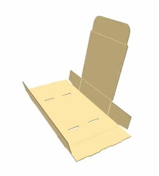 A variation of the Regular Slotted Carton (RSC), the Half Slotted Carton (HSC) has one less set of flaps. When oriented upright, this box has an open top, which can either remain open or be sealed with a separate lid.